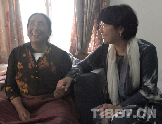 Gu Hong (right), who helped treat Jampa Drolma's disease, visiting with Jampa Drolma (right) before she left Beijing to return to Tibet, interacting with her and recalling the treatment process. Photo taken by Tang Zhaoming on September 30.