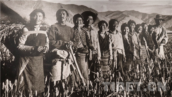 Photo shows Nangsan Mutual Aid Group of Kyerpa Township, Nedong County, which was the first agricultural production mutual aid group in Tibet organized by emancipated serfs. Here are all members of it. Photo by Chen Zonglie