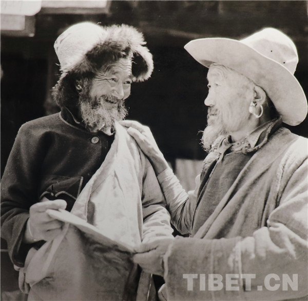 Photo shows people in Lhagyari receive their land certificates issued by the government in 1959. Photo by Lan Zhigui