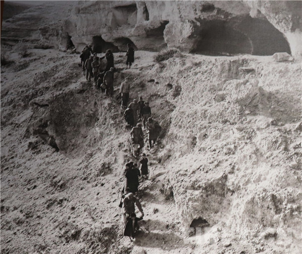 Photo shows serfs living in caves are ready to make their homes in village in Lhagyari under the help of the government in 1959. Photo by Lan Zhigui