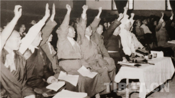 Photo shows the Preparatory Committee for Tibet Autonomous Region holds its 2nd plenary session and unanimously adopts the resolution on democratic reform in the whole region of Tibet.