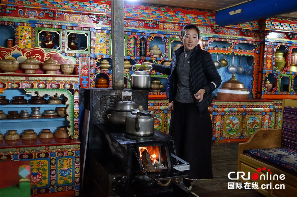 Sangye Drolma is making sweet tea for guests. [Photo/cri.cn]