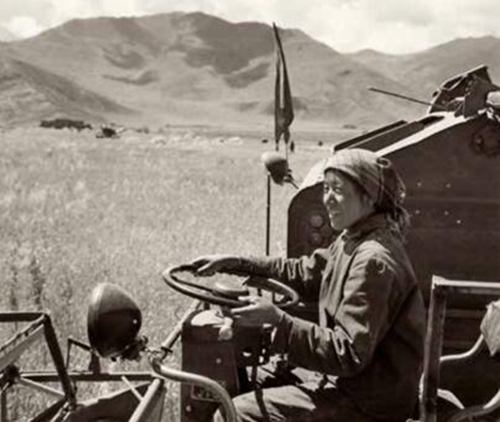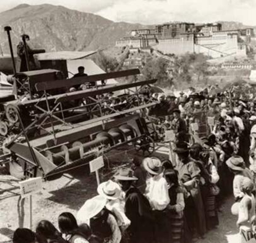 The first combine harvester arrives in Lhasa (1955). Photo by Lan Zhigui