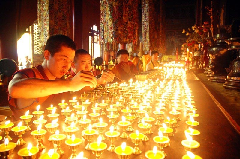 The Butter Lamp Festival in Tibet is one of the most important festivals of the Tibetan calendar, and is known in Tibetan as the “Ganden NgachenChenmo” Festival. The festival is held to commemorate the anniversary of the parinirvana (death) of the founder of the Gelug School of Tibetan Buddhism, Je Tsongkhapa. The festival falls on the 25th day of the tenth month of the Tibetan calendar, which is normally around early December, and is a time when hundreds of thousands of butter lanterns are lit in temples and house windows, on walls and roofs, and all over the streets, burning day and night for four days.