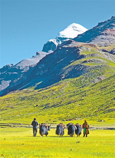 The world famous Mt. Kangrinboqe attracts a large number of domestic and foreign tourists every year. Living at the foot of the snow-capped mountain, people in Gangsha Village of Purang County in southwest China's Tibet has been providing transportation services to visitors with their yaks since 1981, and benefitted a lot from that.